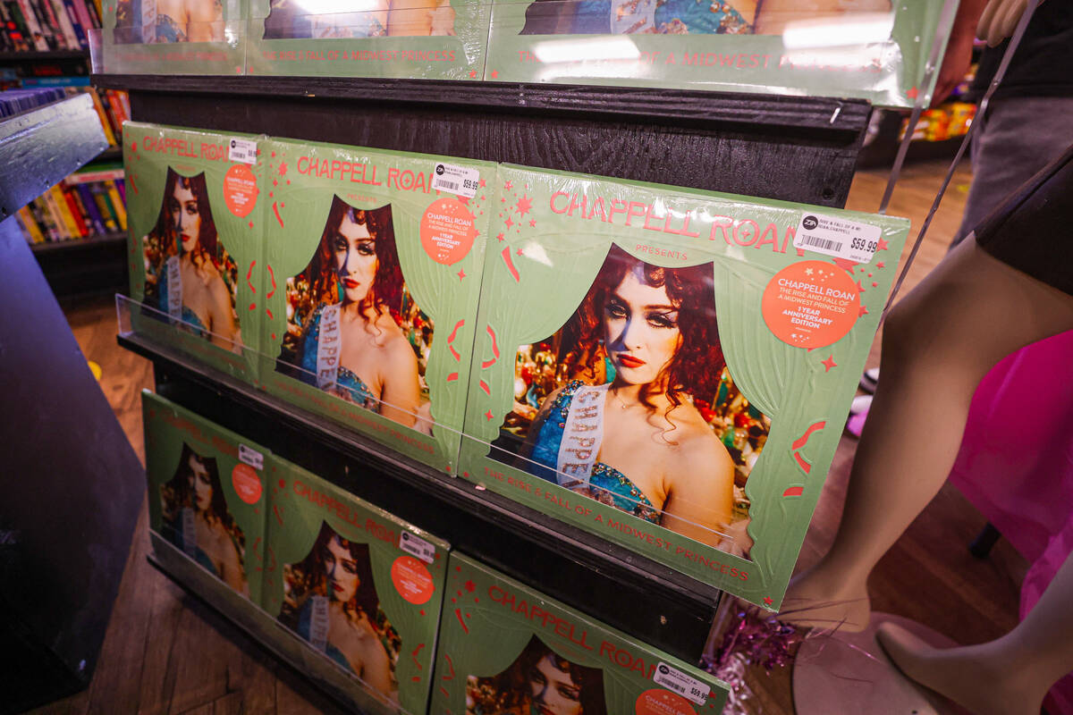 Special edition Chappell Roan vinyls are displayed during a listening party in honor of the one year anniversary of Chappell Roan’s “The Rise and Fall of a Midwest Princess” album at Zia Records on Sunday, Sept. 22, 2024, in Las Vegas. (Madeline Carter/Las Vegas Review-Journal)