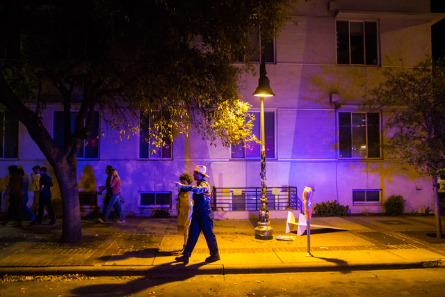 People walk along Trinity Street during the first night of the SXSW music festival in downtown Austin, Texas on Tuesday, March 15, 2016. Chase Stevens/Las Vegas Review-Journal Follow @csstevensphoto