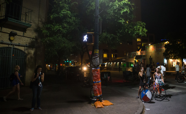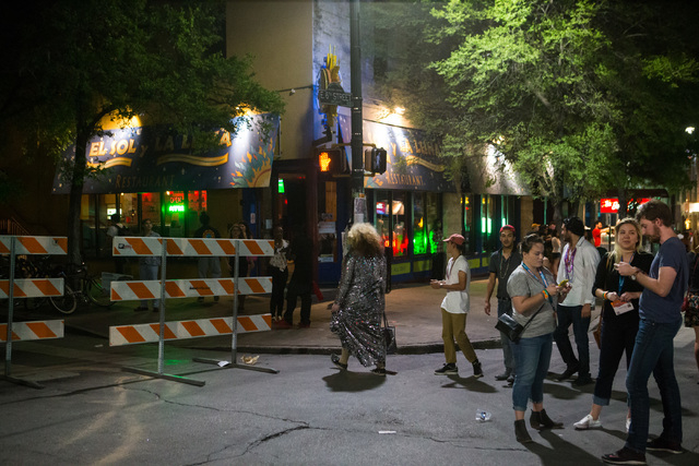 People walk along 6th Street during the first night of the SXSW music festival in downtown Austin, Texas on Tuesday, March 15, 2016. Chase Stevens/Las Vegas Review-Journal Follow @csstevensphoto