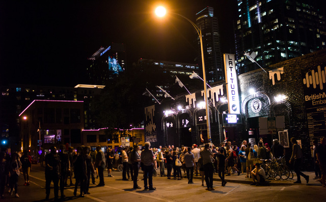 People stand outside of Latitude 30 during the first night of the SXSW music festival in downtown Austin, Texas on Tuesday, March 15, 2016. Chase Stevens/Las Vegas Review-Journal Follow @csstevensphoto