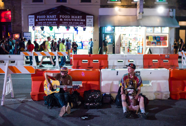 People sit along 6th Street during the first night of the SXSW music festival in downtown Austin, Texas on Tuesday, March 15, 2016. Chase Stevens/Las Vegas Review-Journal Follow @csstevensphoto