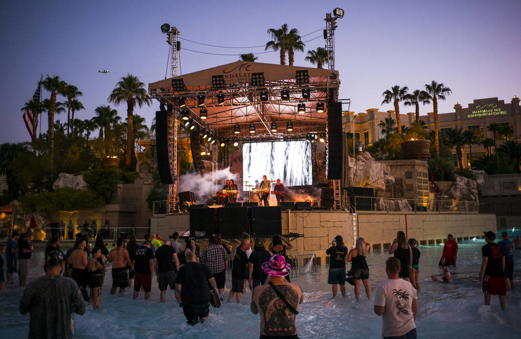 Cold Cave performs at the beach stage during the Psycho Las Vegas music festival at Mandalay Bay in Las Vegas on Friday, Aug. 16, 2019. (Chase Stevens/Las Vegas Review-Journal) @csstevensphoto