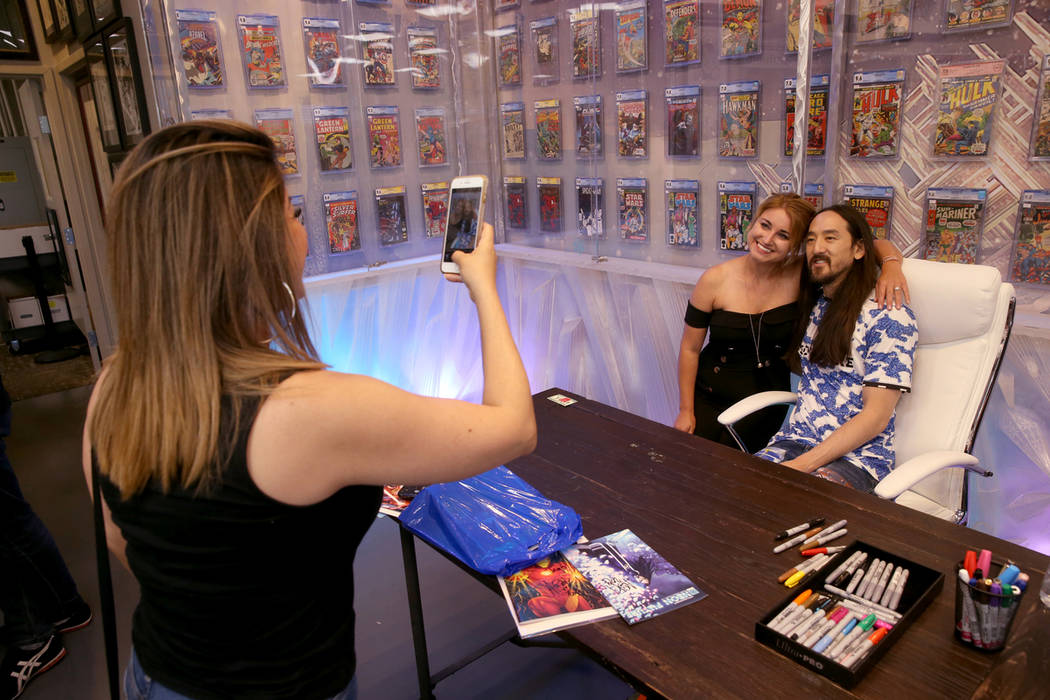 Then Steve Aoki took a seat to autograph copies of his own comic book, “Neon Future,” further solidifying the Grammy-nominated music producer and DJ’s foray into a new art form.