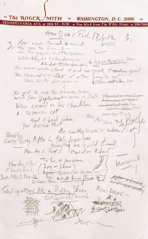 “How does it feel To be on your own” it says in his handwriting. “No direction home Like a complete unknown Like a rolling stone.”