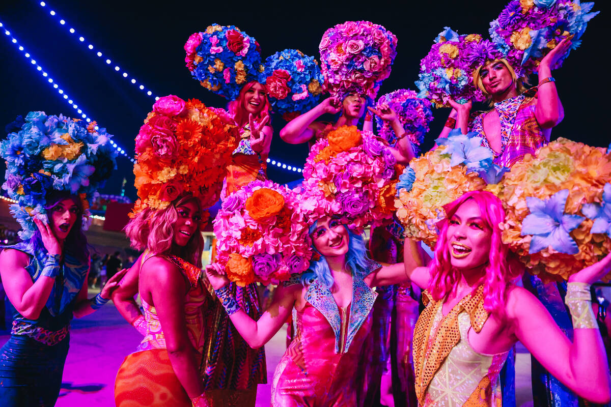 Costumed performers pose for a photograph on the third and final night of the Electric Daisy Carnival at the Las Vegas Motor Speedway on Sunday, May 19, 2024, in Las Vegas. (Madeline Carter/Las Vegas Review-Journal)