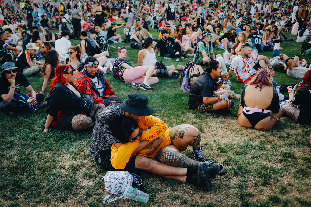 Festival attendees sprawl out on the grass during the first day of Electric Daisy Carnival at Las Vegas Motor Speedway on Friday, May 19, 2023, in Las Vegas. (Madeline Carter/Las Vegas Review-Journal)