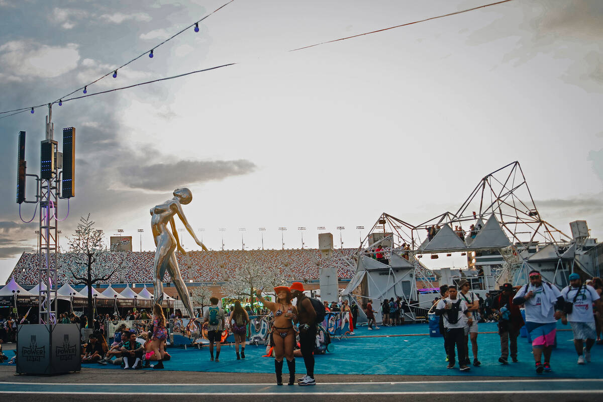 Attendees walk throughout the festival grounds during the first day of Electric Daisy Carnival at Las Vegas Motor Speedway on Friday, May 19, 2023, in Las Vegas. (Madeline Carter/Las Vegas Review-Journal)