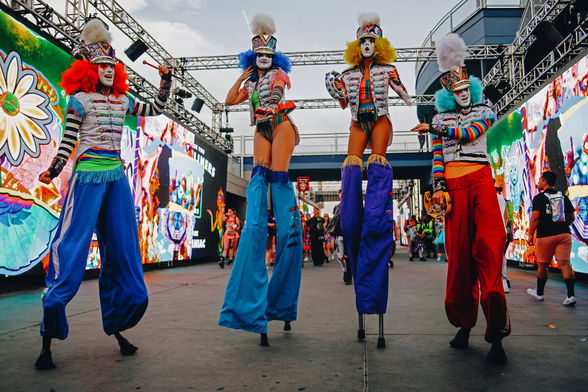 Festival performers dance during the first day of Electric Daisy Carnival at Las Vegas Motor Speedway on Friday, May 19, 2023, in Las Vegas. (Madeline Carter/Las Vegas Review-Journal)