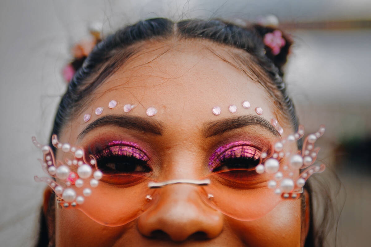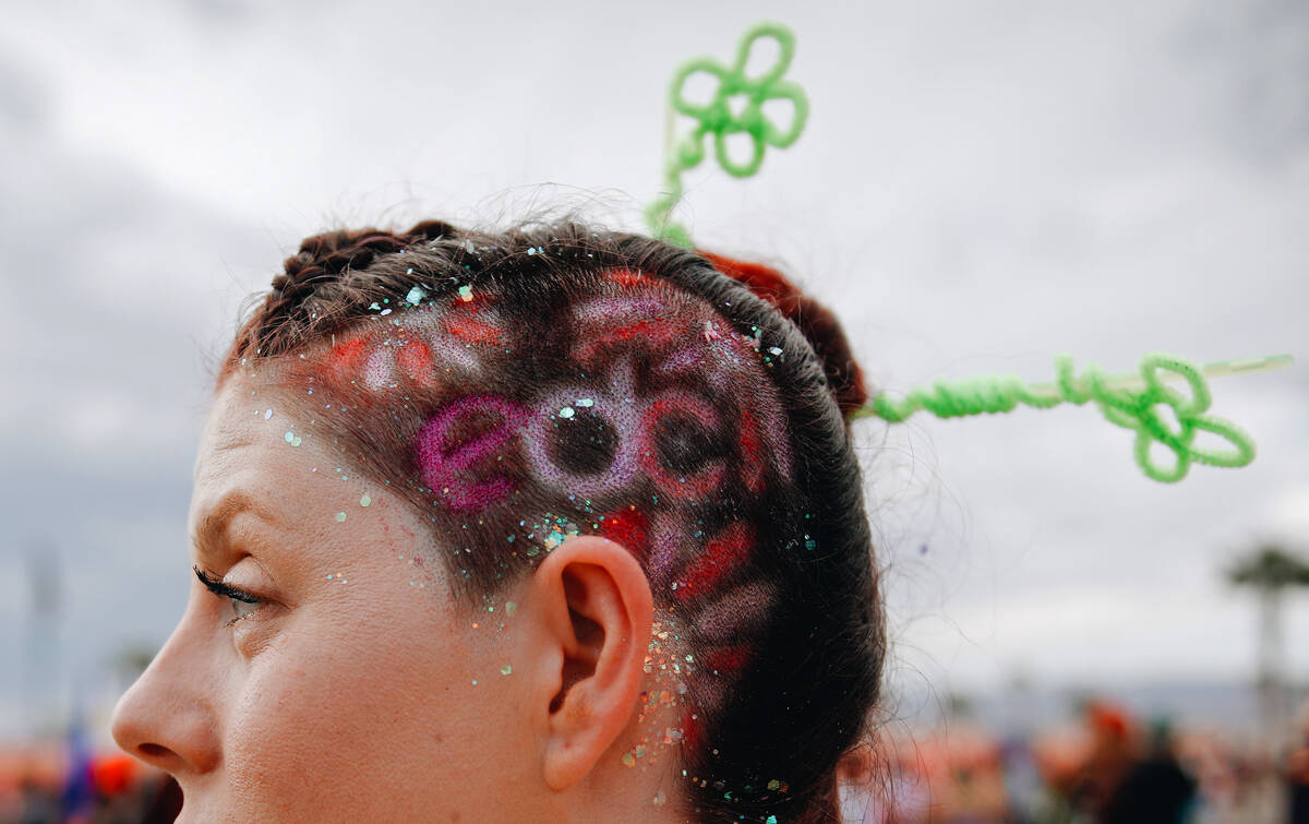 Keisha Chambers shows off her butterfly hairpiece during the first day of Electric Daisy Carnival at Las Vegas Motor Speedway on Friday, May 19, 2023, in Las Vegas. (Madeline Carter/Las Vegas Review-Journal)