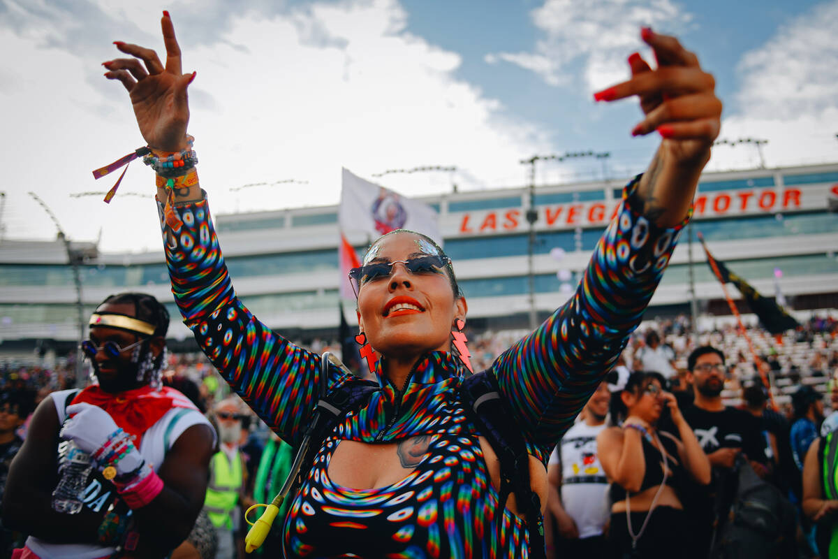 Wendy Pickford dances during the first day of Electric Daisy Carnival at Las Vegas Motor Speedway on Friday, May 19, 2023, in Las Vegas. (Madeline Carter/Las Vegas Review-Journal)