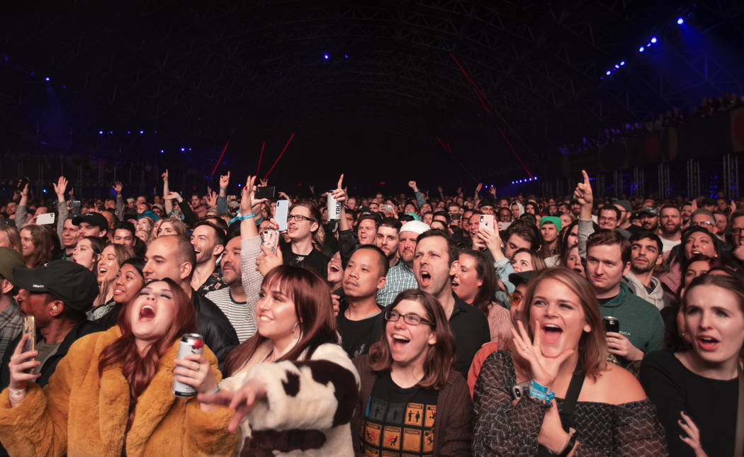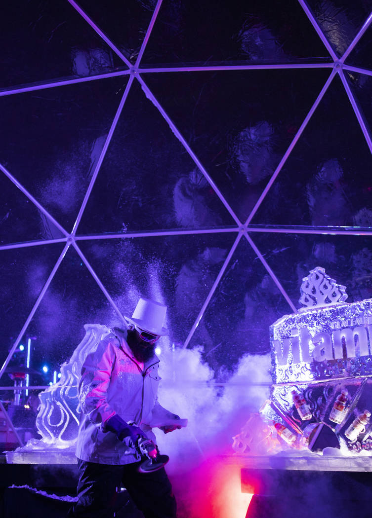 Outdoors, the fest’s courtyard glimmered and popped with abundant visual stimuli and a chainsaw-wielding ice sculptor amid a crowd of thousands of concertgoers.