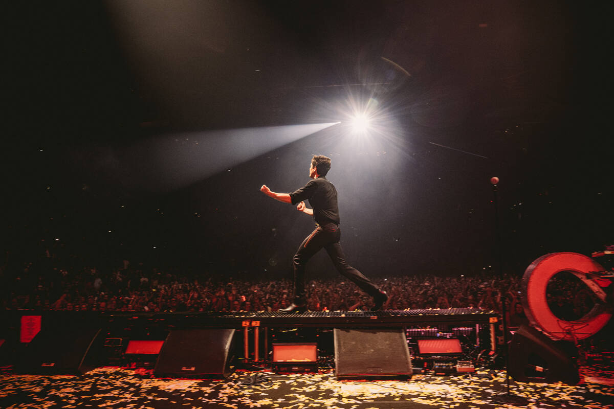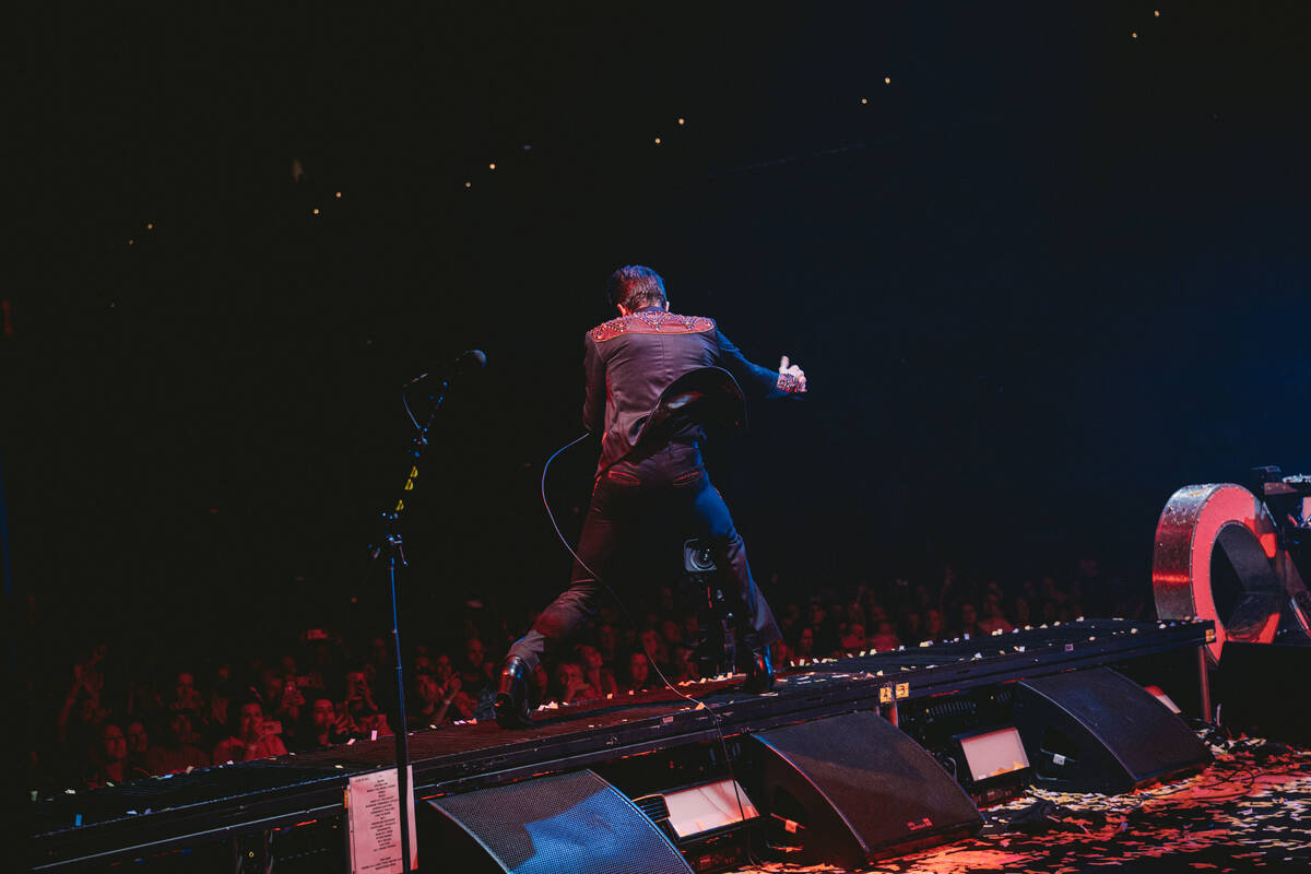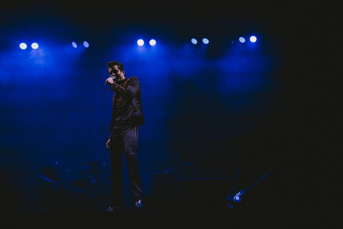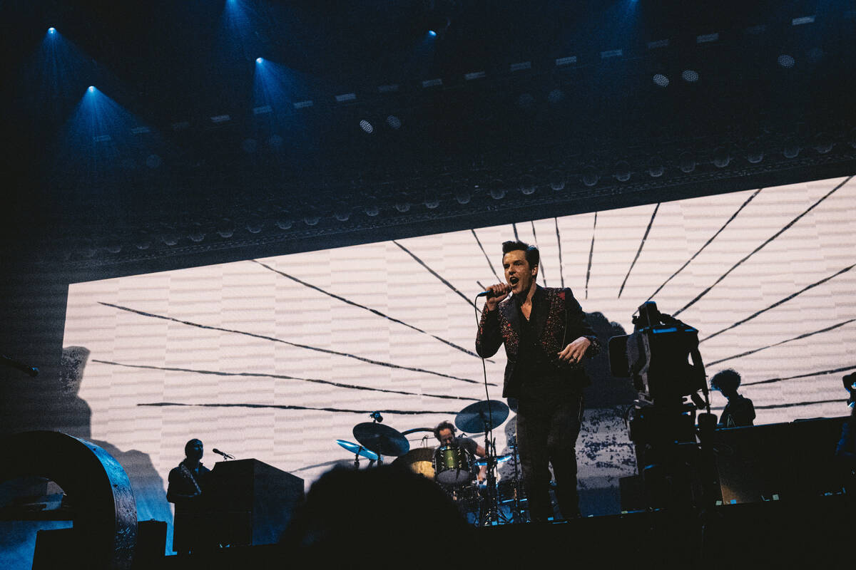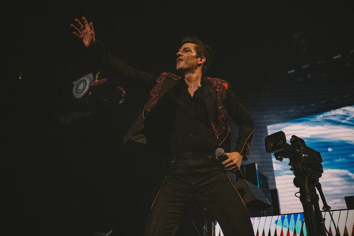 It was the first time the band ever played the song in Vegas, same for anthemic new single “Boy” with its oscillating synth lines and fist-in-the-air chorus, delivered with Flowers bouncing around the stage on the balls of his feet like a boxer working the ring, looking to land that knock-out blow.