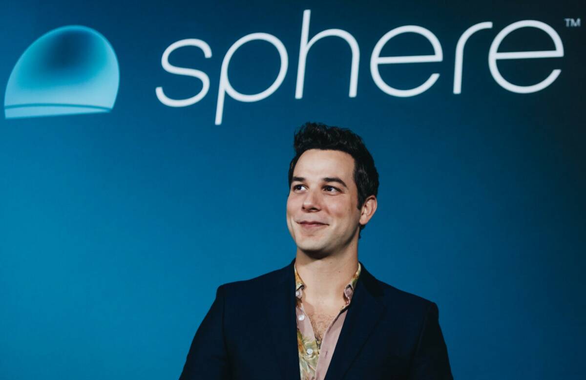 Actor Skylar Astin poses for photographs outside of the Sphere during its opening night on Friday, Sept. 29, 2023, in Las Vegas. (Madeline Carter/Las Vegas Review-Journal)