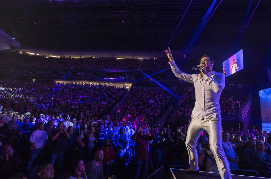 Plenty of other Vegas staples dropped by: Cirque Du Soleil brought some see-sawing “Mystere” acrobatics, David Copperfield appeared to squish himself in a metal box while surrounded by construction workers and Penn & Teller did card tricks with Washington Nationals baseball star and Las Vegas native Bryce Harper, who introduced several performers throughout the night.