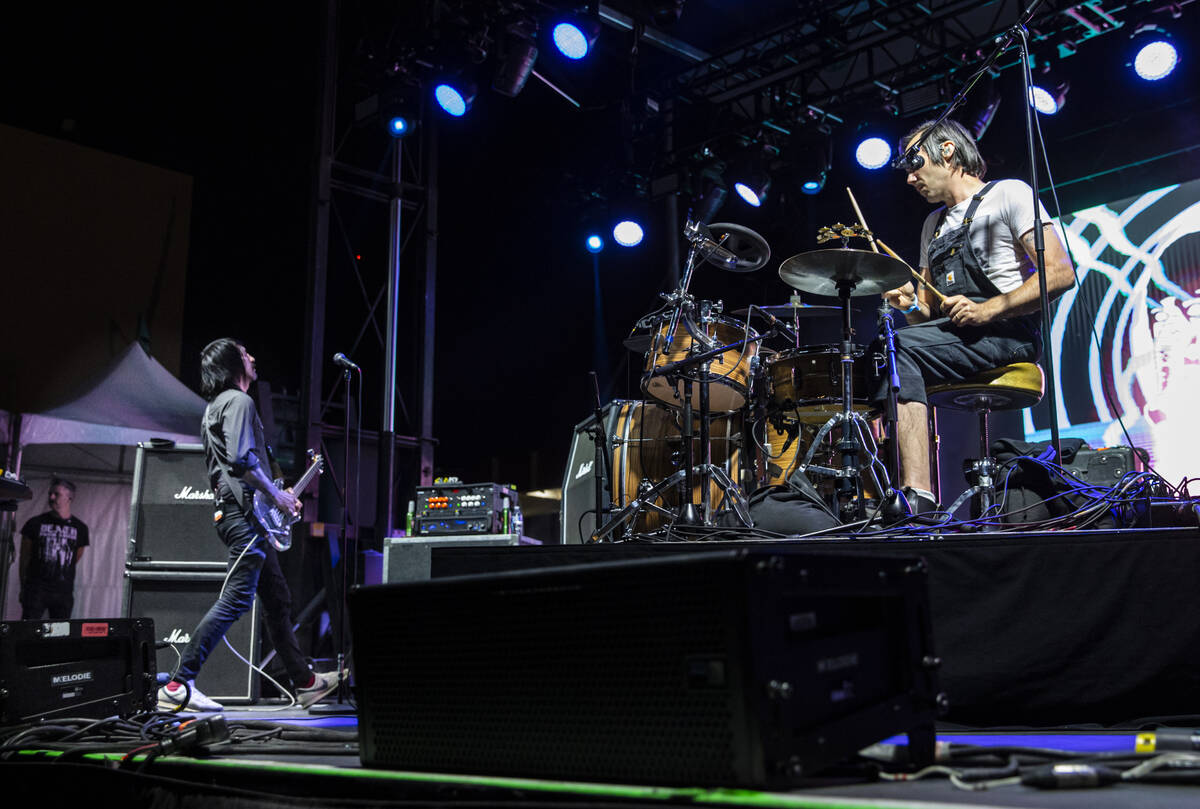 Jesse F. Keeler, left, and Sebastien Grainger, of Death From Above 1979, performº at the Huntridge stage during the final day of the Life is Beautiful festival in downtown Las Vegas on Sunday, Sept. 19, 2021. (Chase Stevens/Las Vegas Review-Journal) @csstevensphoto