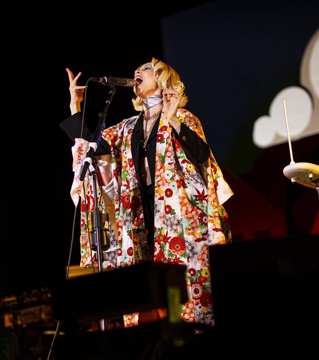 St. Vincent performs at the downtown stage during the final day of the Life is Beautiful festival in downtown Las Vegas on Sunday, Sept. 19, 2021. (Chase Stevens/Las Vegas Review-Journal) @csstevensphoto