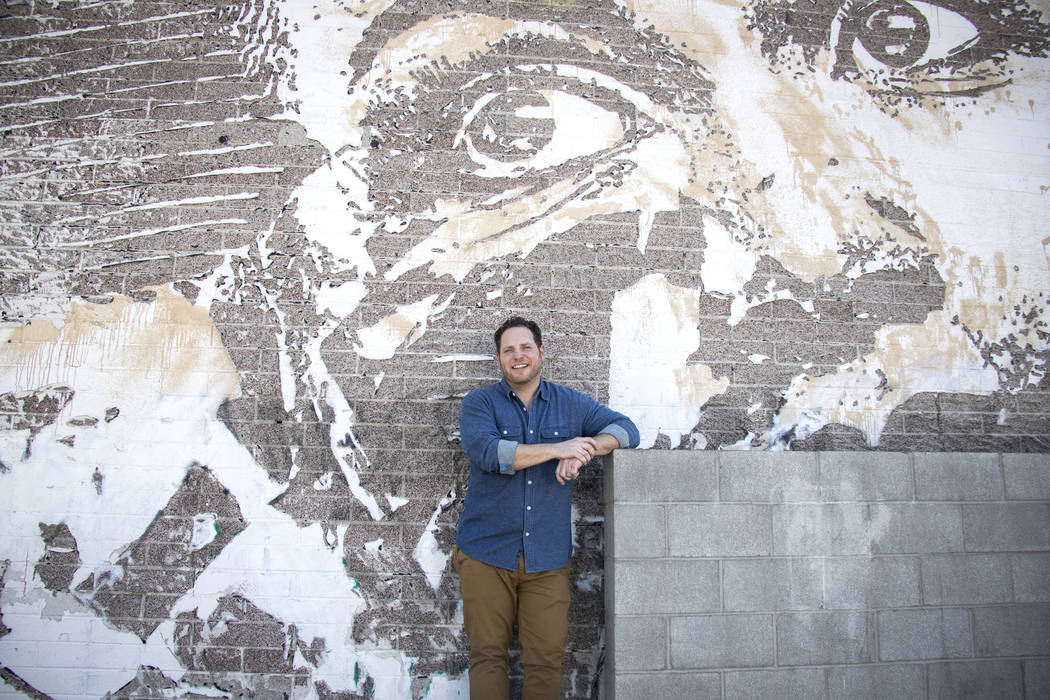 It’s an unseasonably hot, syrup-sticky Thursday afternoon, and Craig Asher Nyman is standing in front of Spanish painter and sculptor Okuda San Miguel’s “Rest of the Three Graces” mural tucked off Seventh Street and Ogden Avenue.