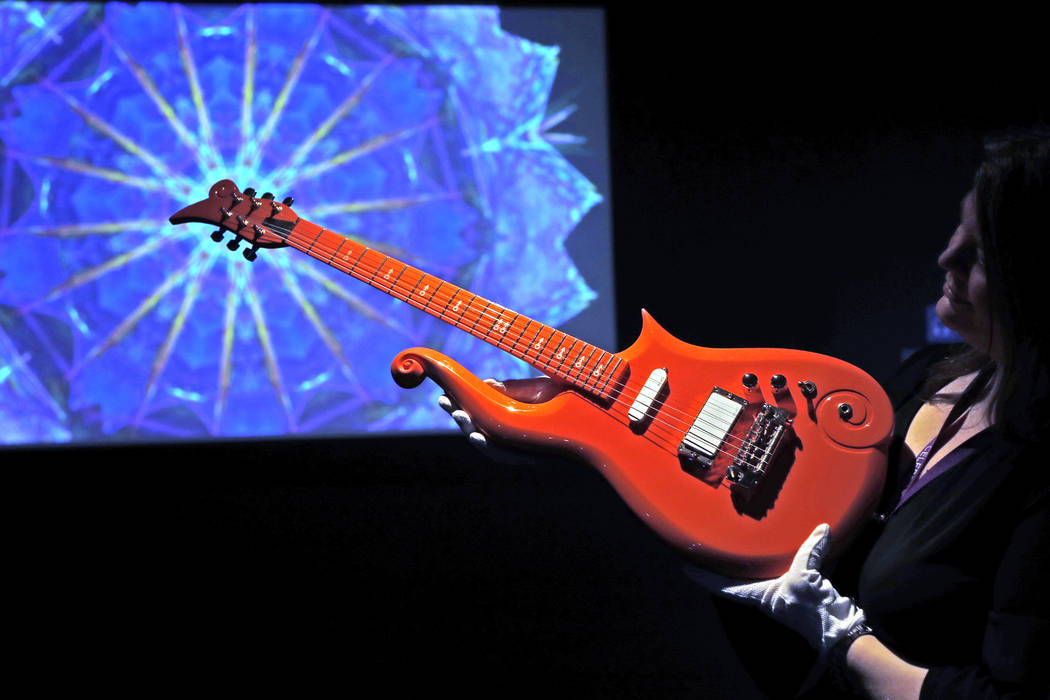 LONDON — Guitars, paisley-patterned outfits and high-heeled shoes are going on display at a London exhibition devoted the late music star Prince.