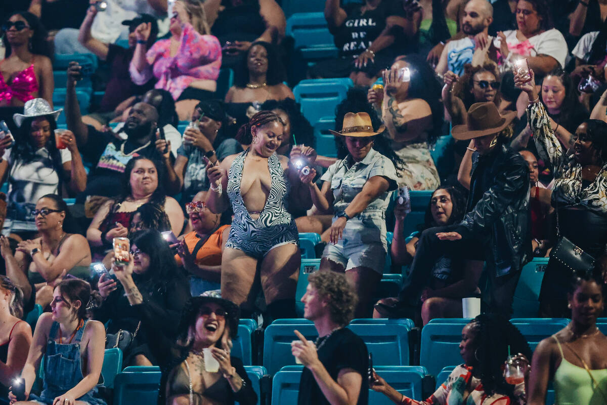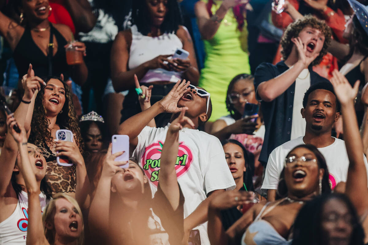 Fans dance to music before Megan Thee Stallion takes the stage during the Hot girl Summer Tour at MGM Grand Garden Arena on Saturday, June 22, 2024, in Las Vegas. (Madeline Carter/Las Vegas Review-Journal)