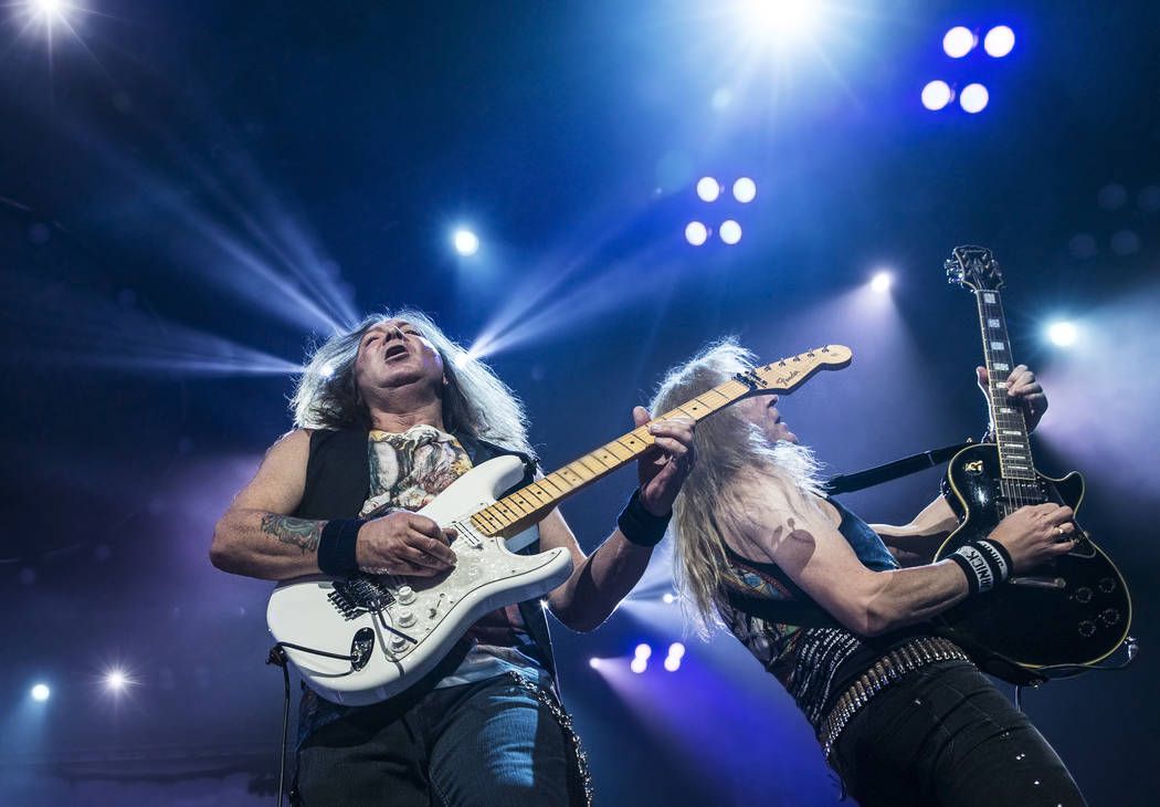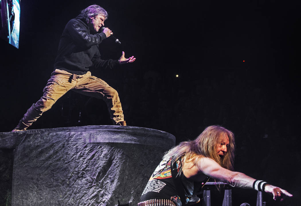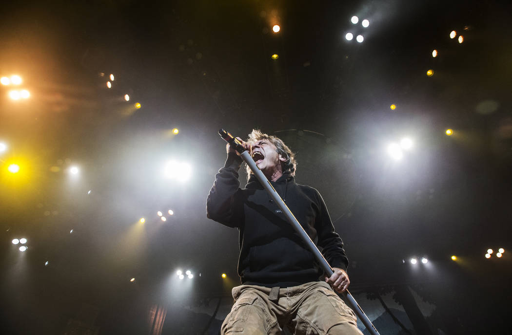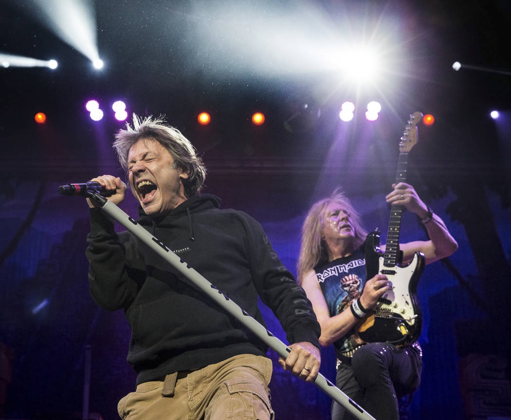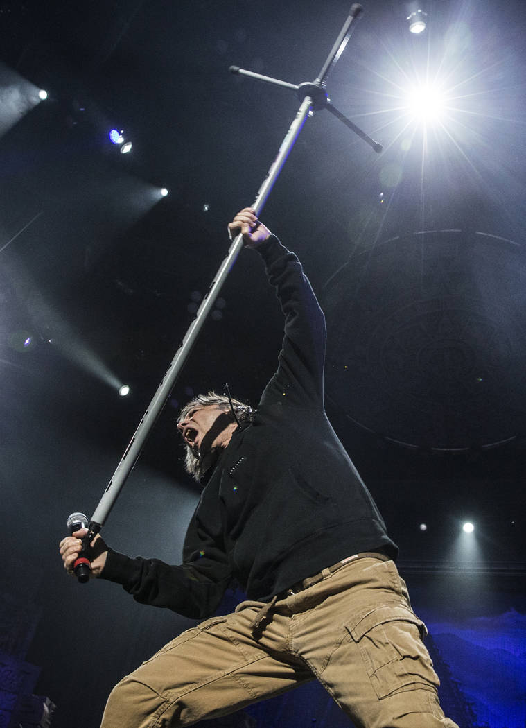 Maiden hit T-Mobile Arena on Monday in support of their two-disc, 90-minute magnum opus “The Book of Souls,” which finds them scaling another creative peak in one of heavy metal’s most mountainous discographies. The band dedicated almost half of their two-hour set on Monday to six tunes from the record, the rare instance of a heritage act with a loaded arsenal of hits favoring new material as much as vintage favorites.