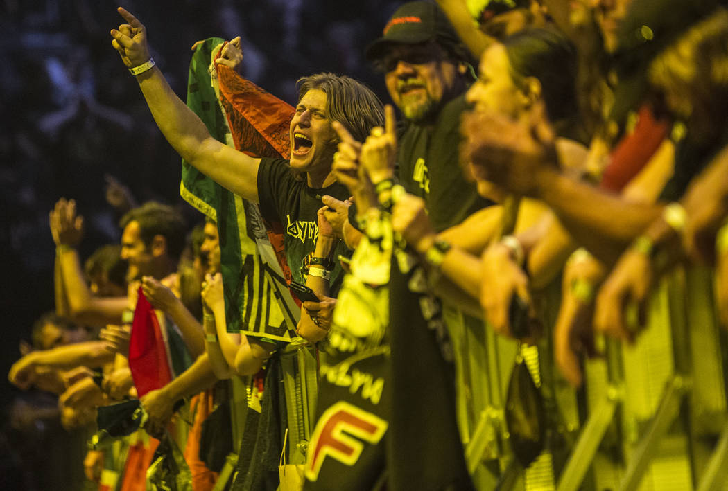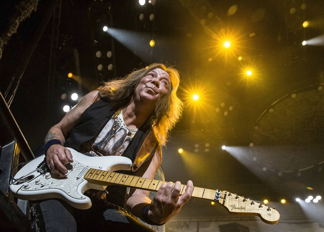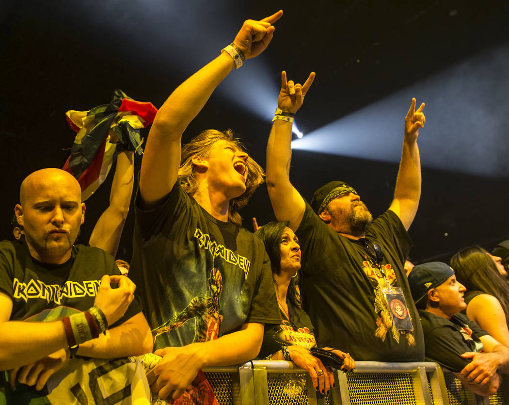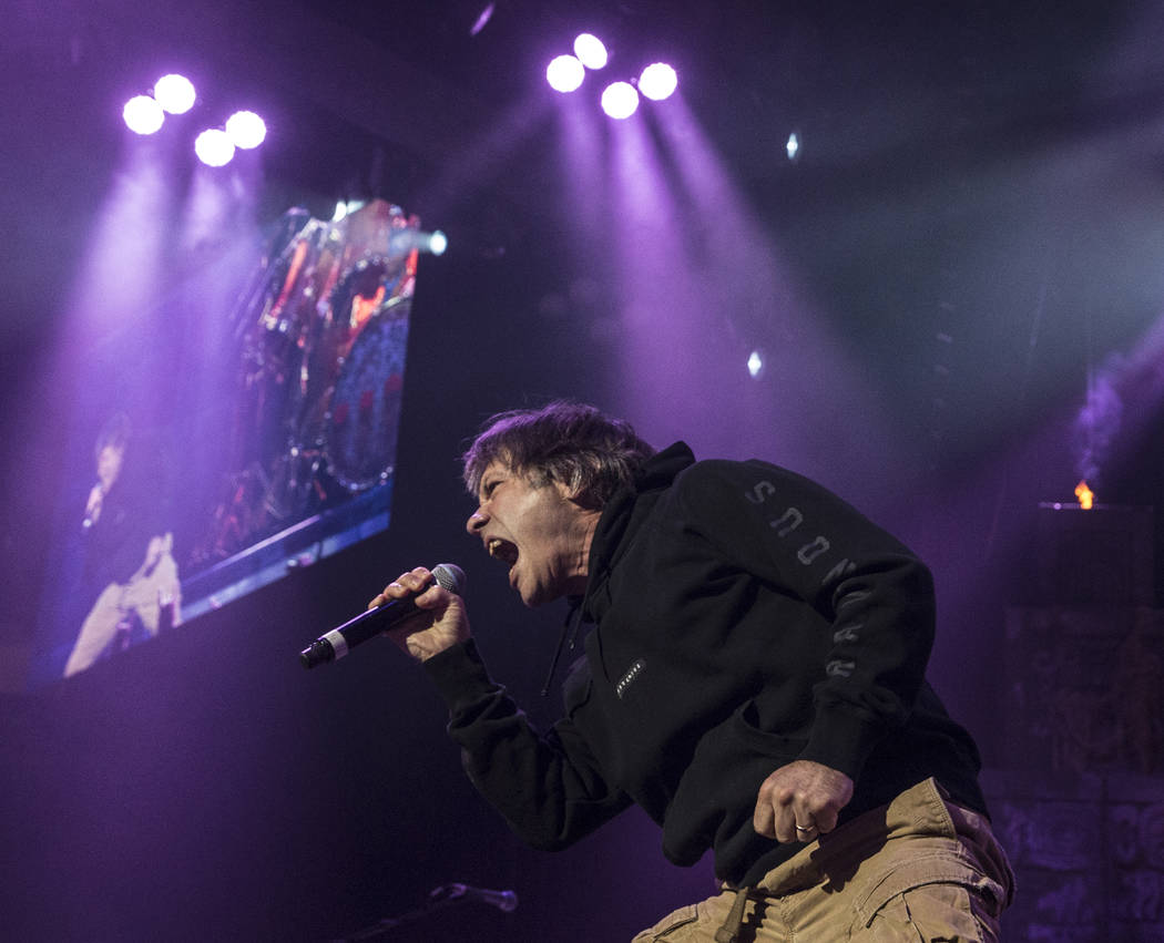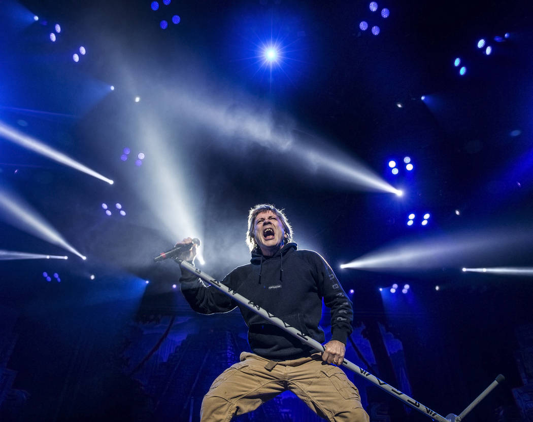 Maiden hit T-Mobile Arena on Monday in support of their two-disc, 90-minute magnum opus “The Book of Souls,” which finds them scaling another creative peak in one of heavy metal’s most mountainous discographies. The band dedicated almost half of their two-hour set on Monday to six tunes from the record, the rare instance of a heritage act with a loaded arsenal of hits favoring new material as much as vintage favorites.