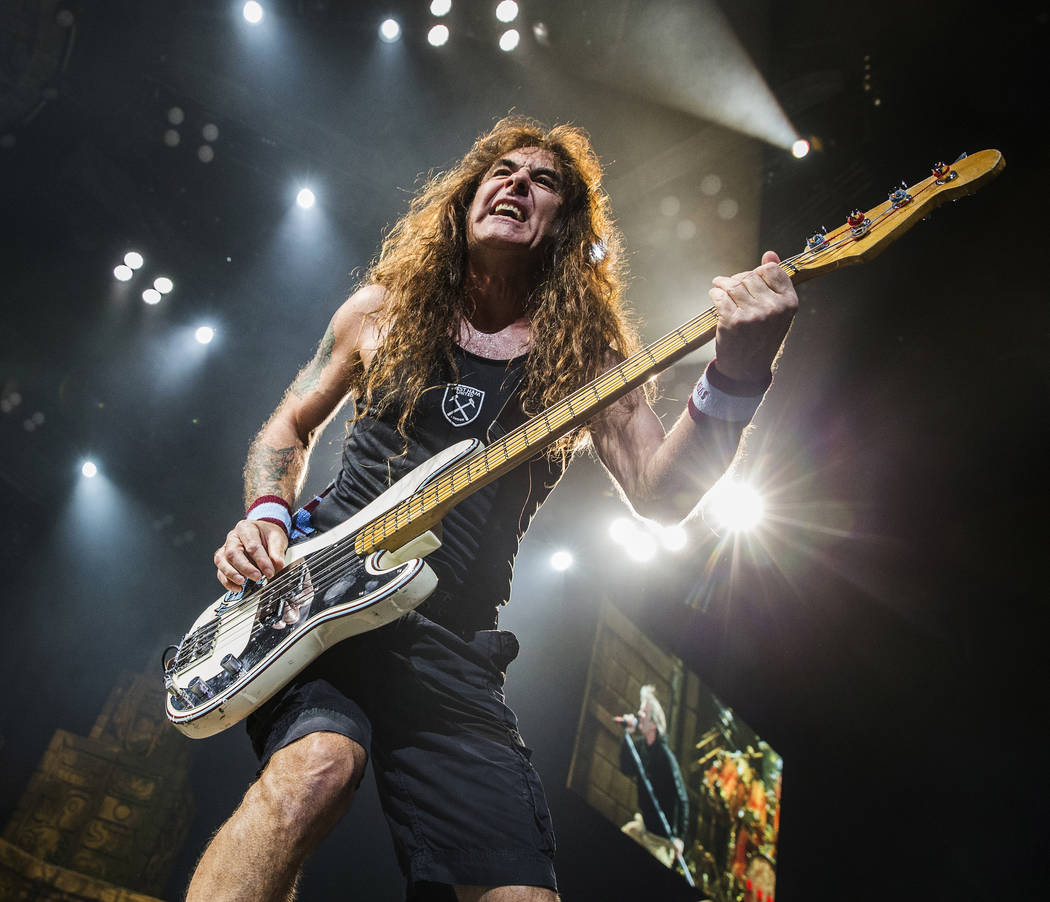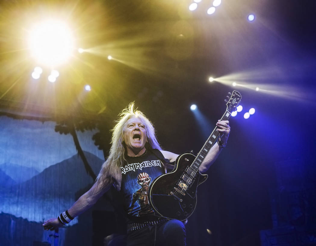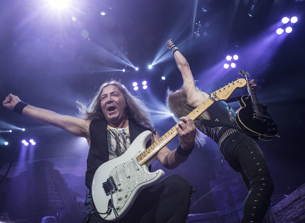 By now, Maiden’s sonic trademarks are as indelible a part of the heavy metal songbook as the ink that stains its pages: the assertive, athletic bass lines of Steve Harris (you’ll never see more audience members busting out their air bass chops than at a Maiden gig), the triplicate guitar harmonies of Adrian Smith, Dave Murray and Janick Gers, the seismic double-bass-drum volleys of Nicko McBrain and lyrics that mine the historical past while casting an inquisitive eye towards an uncertain future.