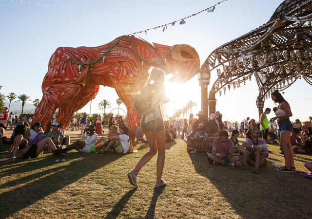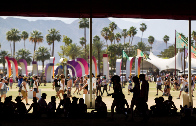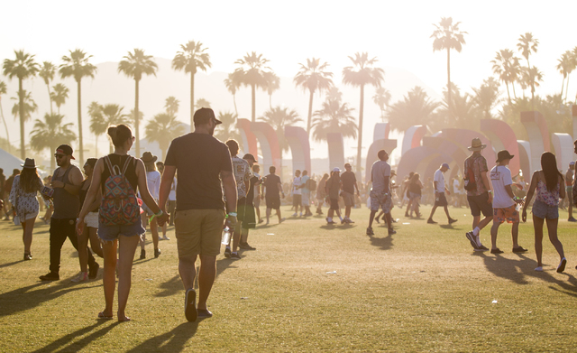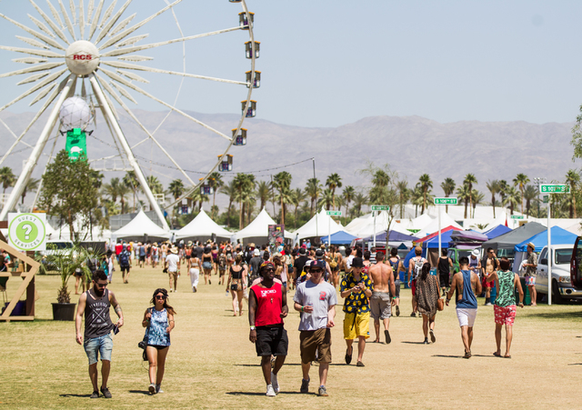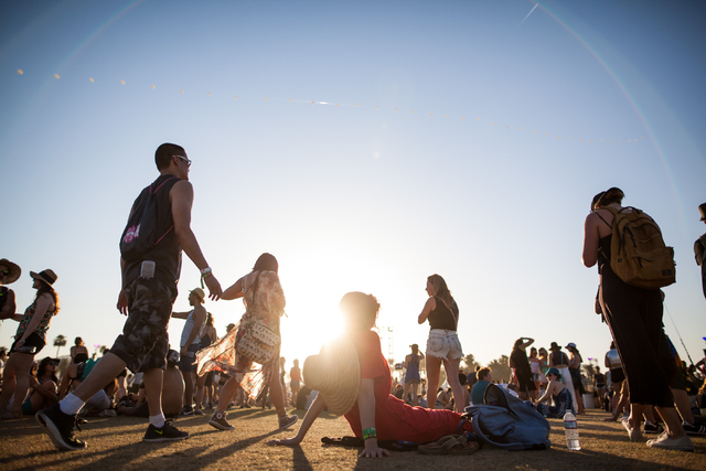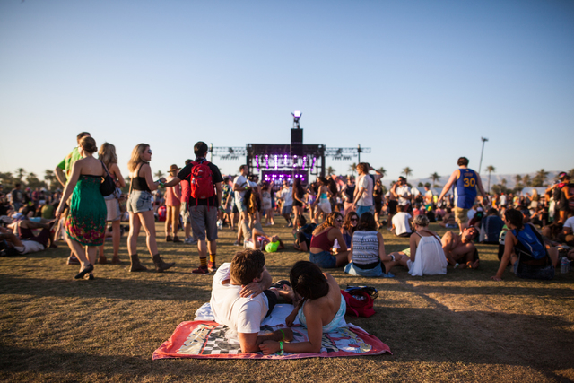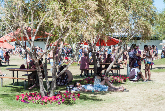 Attendees walk around and relax during the second weekend of Coachella Valley Music & Arts Festival at the Empire Polo Club on Saturday, April 18, 2015 in Indio, Calif. (Chase Stevens/Las Vegas Review-Journal) Follow Chase Stevens on Twitter at @csstevensphoto