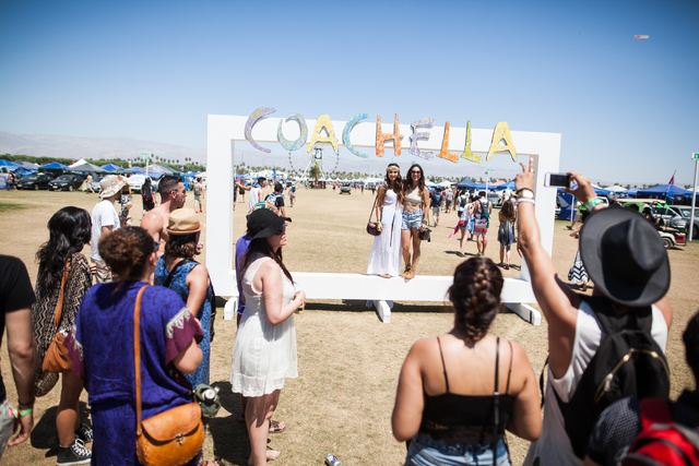 Attendees take photos in a campground area during the second weekend of Coachella Valley Music & Arts Festival at the Empire Polo Club on Saturday, April 18, 2015 in Indio, Calif. (Chase Stevens/Las Vegas Review-Journal) Follow Chase Stevens on Twitter at @csstevensphoto