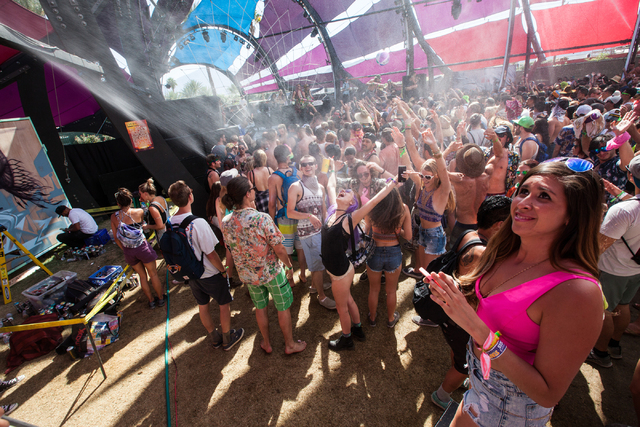 Attendees are cooled off at The Do Lab during the second weekend of Coachella Valley Music & Arts Festival at the Empire Polo Club on Saturday, April 18, 2015 in Indio, Calif. (Chase Stevens/Las Vegas Review-Journal) Follow Chase Stevens on Twitter at @csstevensphoto
