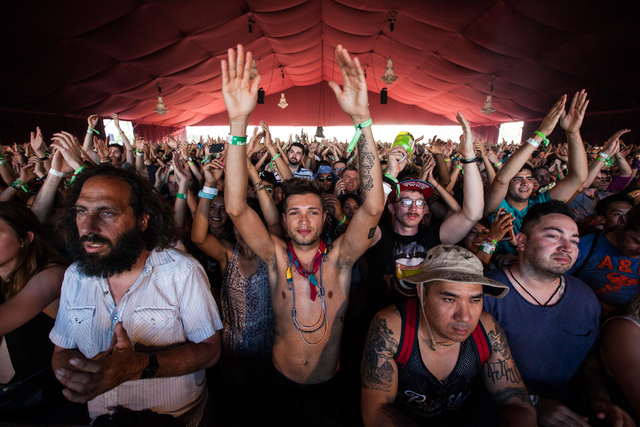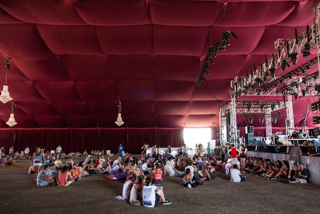 Attendees walk around and relax in the Gobi tent during the second weekend of Coachella Valley Music & Arts Festival at the Empire Polo Club on Saturday, April 18, 2015 in Indio, Calif. (Chase Stevens/Las Vegas Review-Journal) Follow Chase Stevens on Twitter at @csstevensphoto