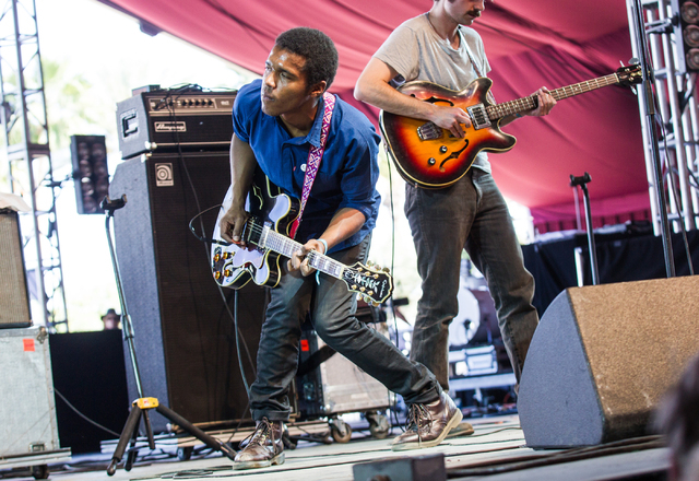 Benjamin Booker, center, is seen on stage before performing during the second weekend of Coachella Valley Music & Arts Festival at the Empire Polo Club on Saturday, April 18, 2015 in Indio, Calif. (Chase Stevens/Las Vegas Review-Journal) Follow Chase Stevens on Twitter at @csstevensphoto