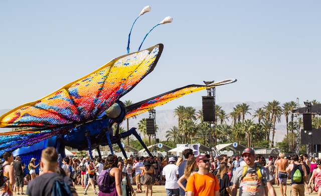 Art piece Papilio Merraculous, created by art group Poetic Kinetics, is seen during the second weekend of Coachella Valley Music & Arts Festival at the Empire Polo Club on Saturday, April 18, 2015 in Indio, Calif. (Chase Stevens/Las Vegas Review-Journal) Follow Chase Stevens on Twitter at @csstevensphoto