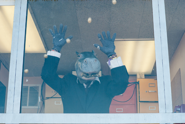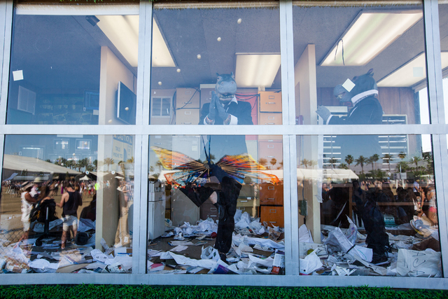 A detail of live art installation The Corporate Headquarters, created by Derek Doublin and Vanessa Bonet, is seen during the second weekend of Coachella Valley Music & Arts Festival at the Empire Polo Club on Saturday, April 18, 2015 in Indio, Calif. (Chase Stevens/Las Vegas Review-Journal) Follow Chase Stevens on Twitter at @csstevensphoto