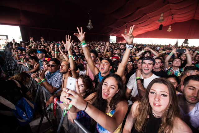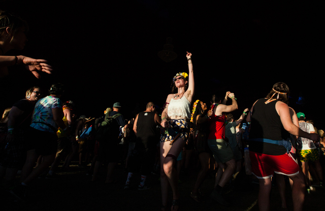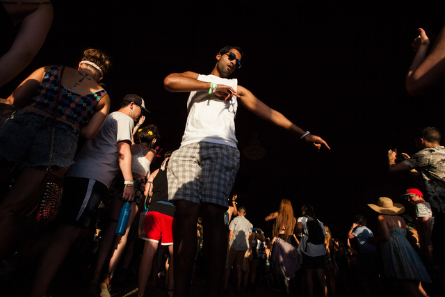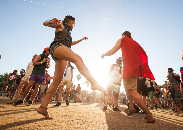 Attendees dance to music during the second weekend of Coachella Valley Music & Arts Festival at the Empire Polo Club on Saturday, April 18, 2015 in Indio, Calif. (Chase Stevens/Las Vegas Review-Journal) Follow Chase Stevens on Twitter at @csstevensphoto