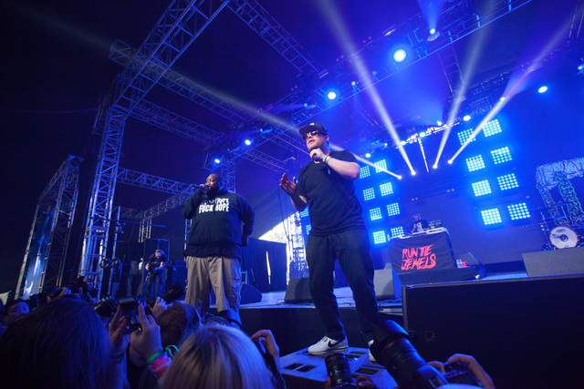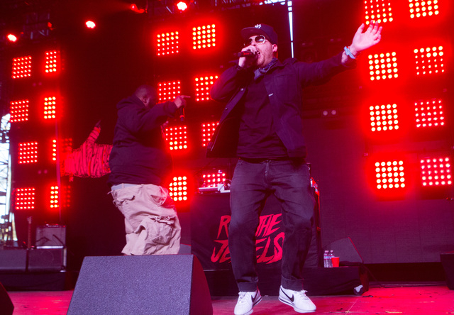 El-P, left, and Killer Mike of Run the Jewels perform during the second weekend of Coachella Valley Music & Arts Festival at the Empire Polo Club on Saturday, April 18, 2015 in Indio, Calif. (Chase Stevens/Las Vegas Review-Journal) Follow Chase Stevens on Twitter at @csstevensphoto