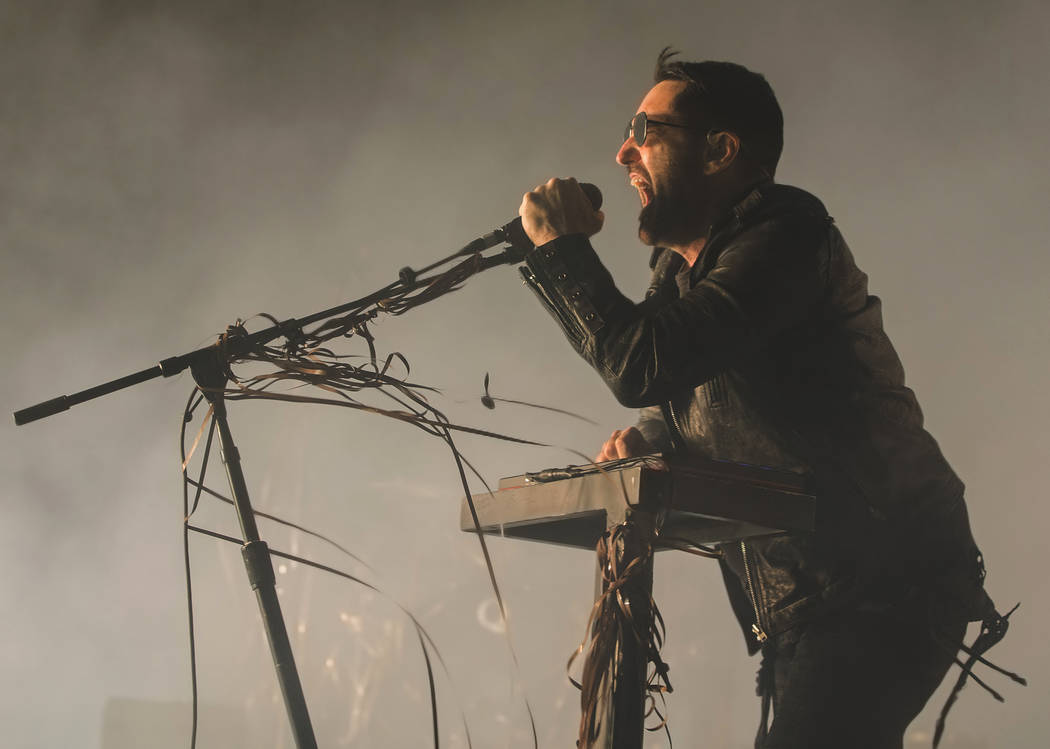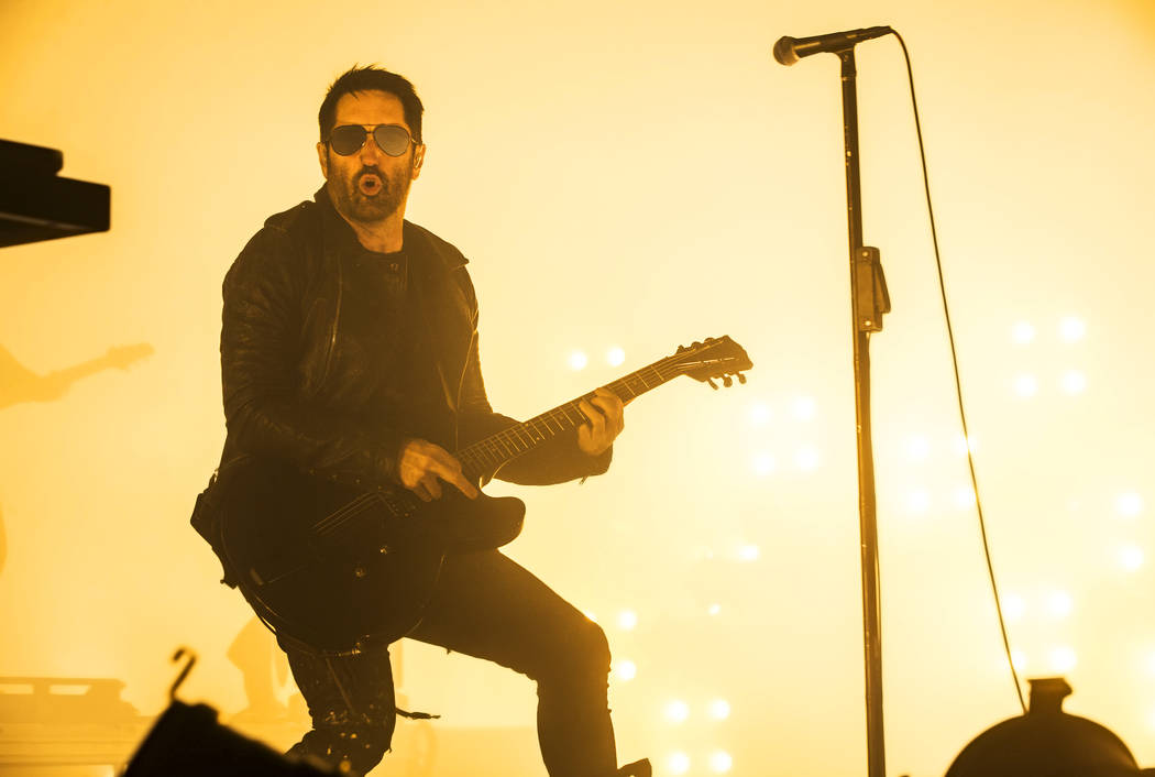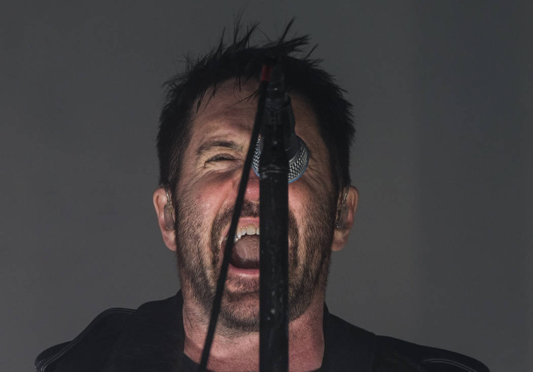 “Parts of me are slowing down, time is speeding up,” Reznor howled during another “Events” tune, “Branches/Bones,” a show-opening, tone-setting missive. That line is a bit of a lyrical head fake: Yeah, the leather-clad, mirrored shades-sporting father of three who screamed it is getting older, but close your eyes and the roar remains ageless.