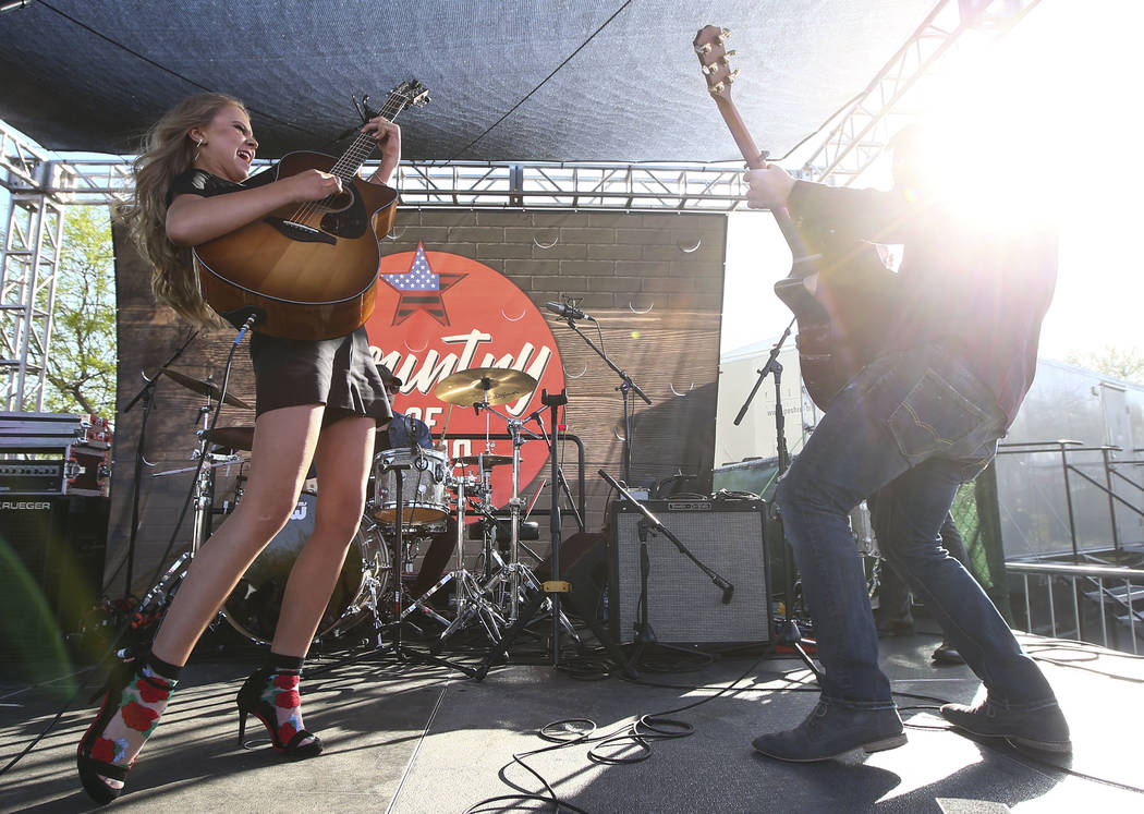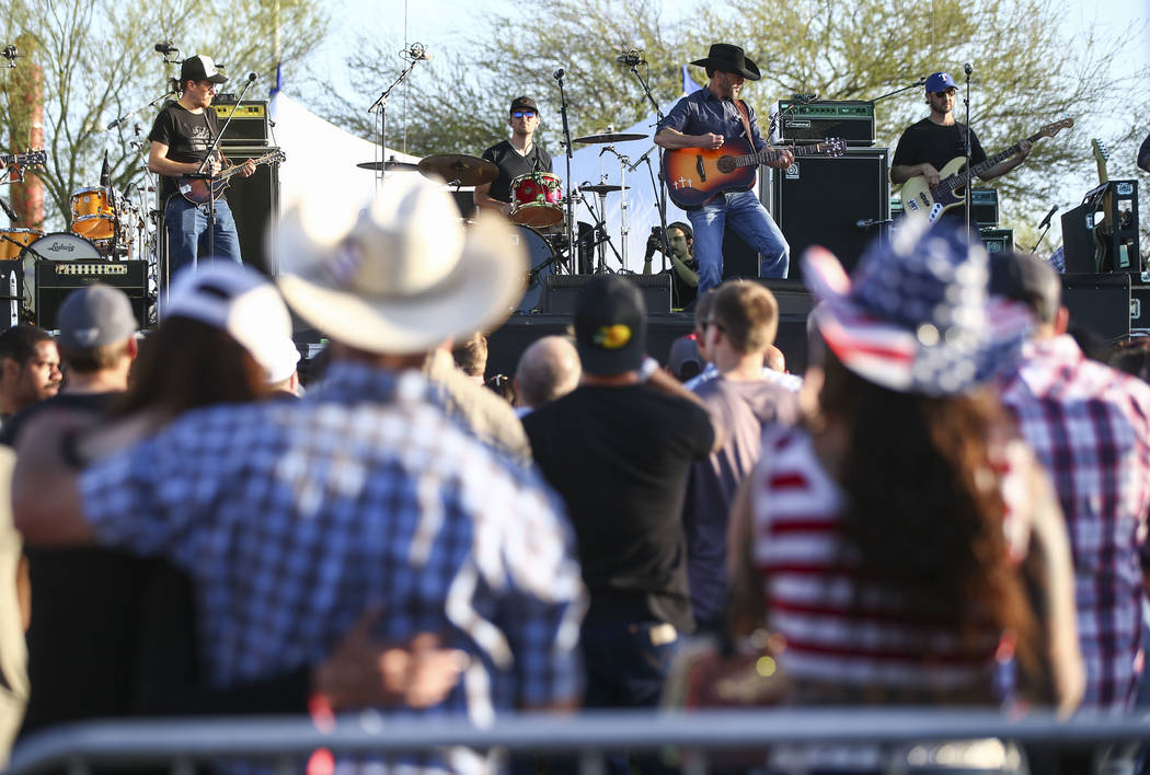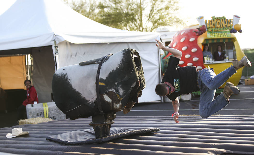 As strong winds blew clumps of hay across the Stoney’s parking lot where the event took place, concertgoers tossed bean bags into cornhole platforms decorated as American flags, line-danced on a massive, elevated wooden dance floor and eventually got tipsy enough to brave the mechanical bull that sat largely idle until early evening.