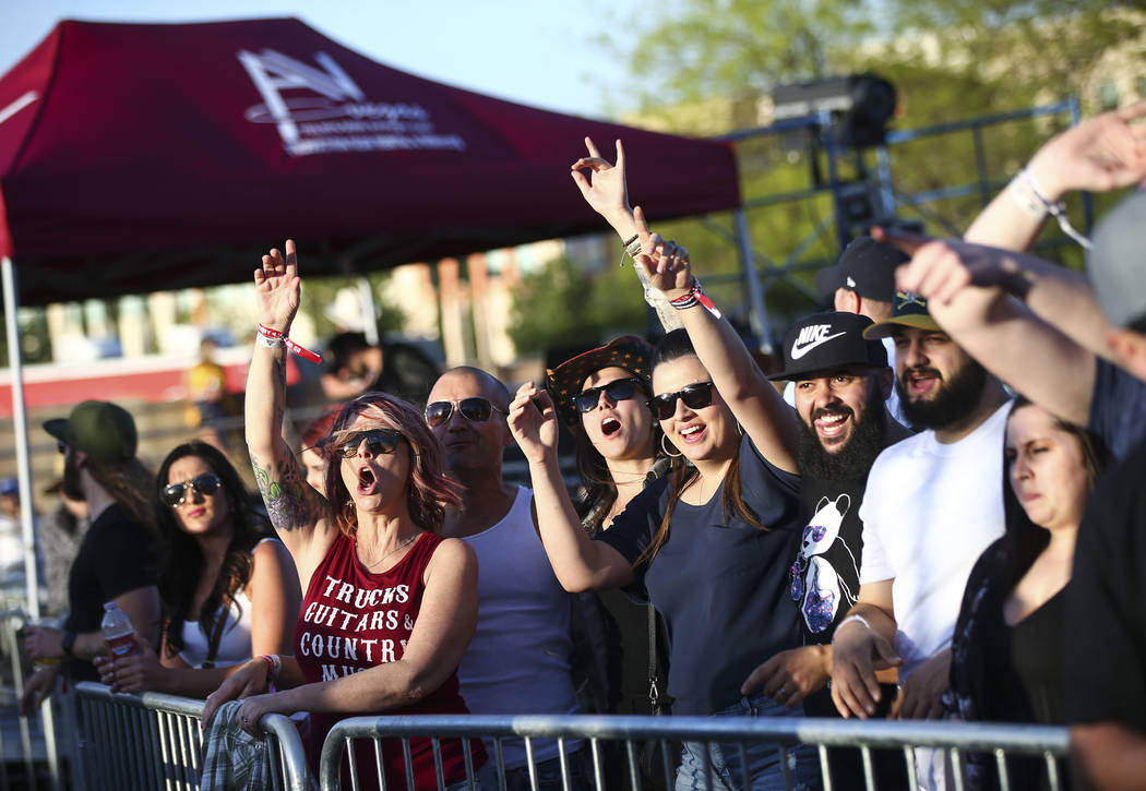 “I’m uncomfortable,” Curley said, clad in a Vegas Strong T-shirt, shades and a cowboy hat while seated at a table in the festival’s food area. “But I’m surrounded by family, pretty much.”