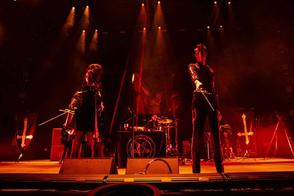 Alexandra James, left, and Zachary James of Twin Temple perform during Psycho Las Vegas at Mandalay Bay in Las Vegas on Friday, Aug. 20, 2021. (Chase Stevens/Las Vegas Review-Journal) @csstevensphoto