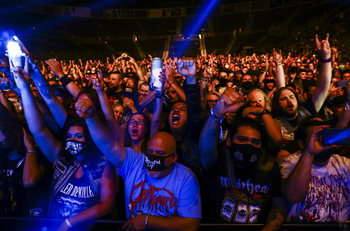 Fans cheer as Obituary takes the stage during Psycho Las Vegas at Mandalay Bay in Las Vegas on Friday, Aug. 20, 2021. (Chase Stevens/Las Vegas Review-Journal) @csstevensphoto