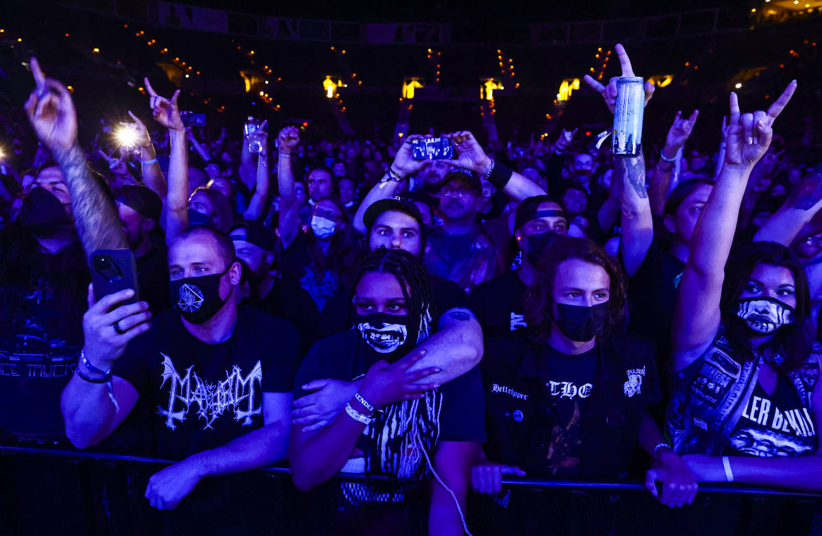 People cheer as Mastodon performs during Psycho Las Vegas at Mandalay Bay in Las Vegas on Friday, Aug. 20, 2021. (Chase Stevens/Las Vegas Review-Journal) @csstevensphoto