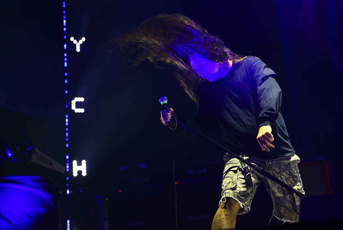 Brent Hinds of Mastodon performs during Psycho Las Vegas at Mandalay Bay in Las Vegas on Friday, Aug. 20, 2021. (Chase Stevens/Las Vegas Review-Journal) @csstevensphoto
