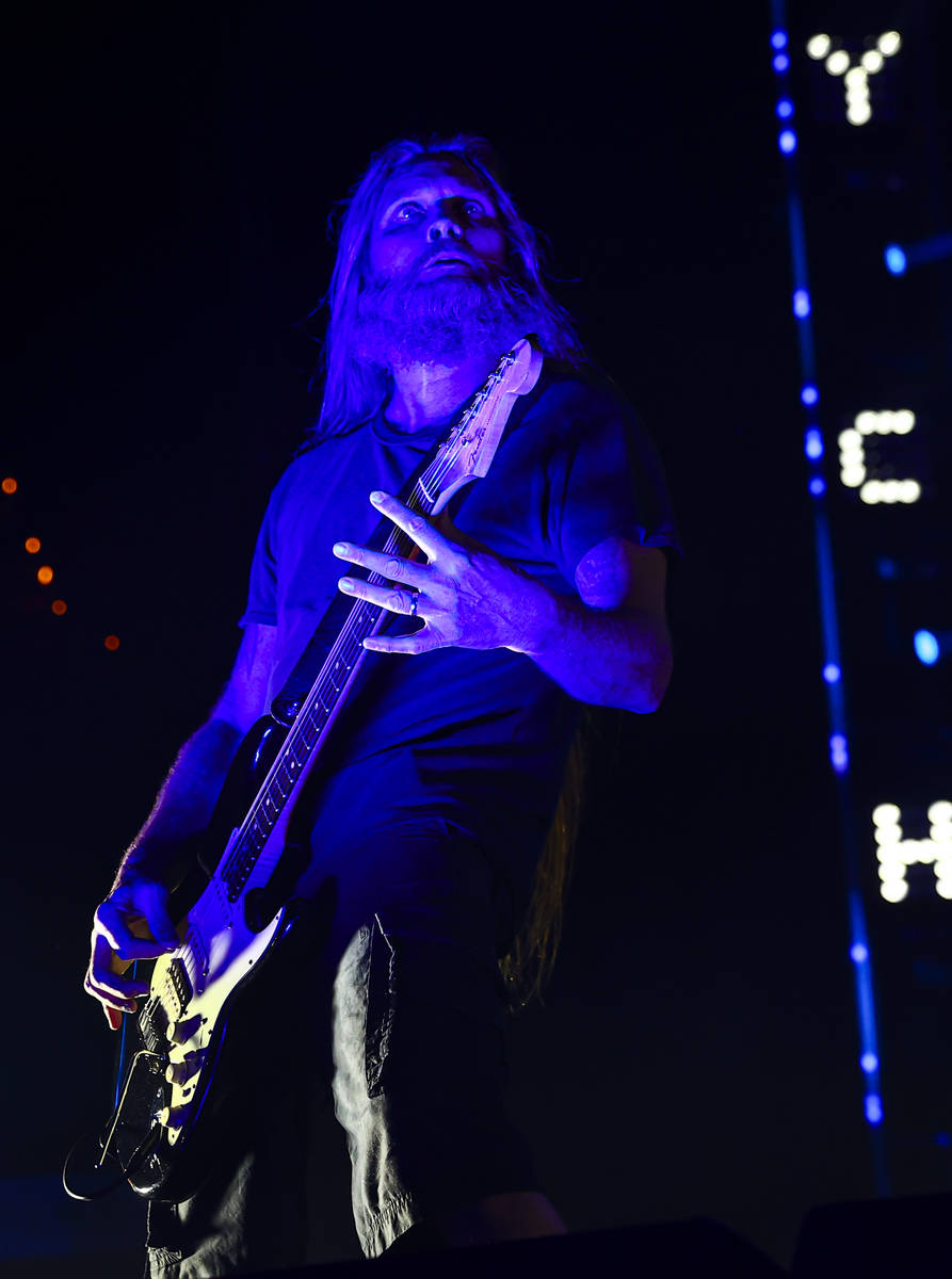 Bill Kelliher of Mastodon performs during Psycho Las Vegas at Mandalay Bay in Las Vegas on Friday, Aug. 20, 2021. (Chase Stevens/Las Vegas Review-Journal) @csstevensphoto