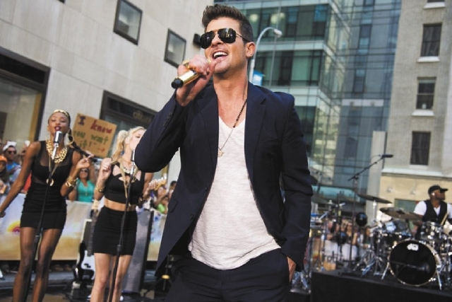 “It has a (nice) tempo, it has a sense of humor and it feels like live music instead of that synth and digital sound, which Daft Punk has (with `Get Lucky’) and (Bruno Mars’) `Treasure’ has,” Thicke said of his infectious, naughty jam, the longest-running song on the Billboard Hot 100 chart this year at eight weeks (and counting). “It makes you laugh, it’s soulful and it’s got an organic sound to it.”