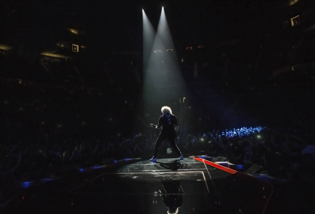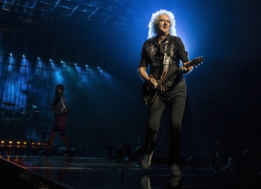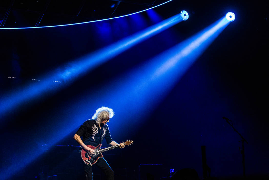 Shortly thereafter, as the band segued into “Somebody to Love,” May found himself at the lip of the stage with Lambert.