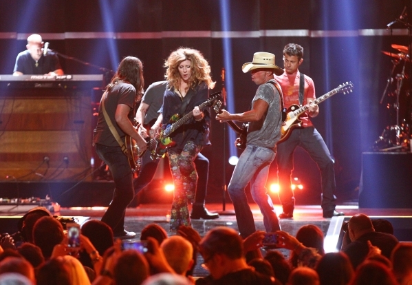 Kenny Chesney, second from right, performs during the iHeartradio Music Festival at the MGM Grand Garden Arena in Las Vegas on Friday, Sept. 18, 2015. Chase Stevens/Las Vegas Review-Journal Follow @csstevensphoto