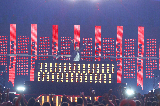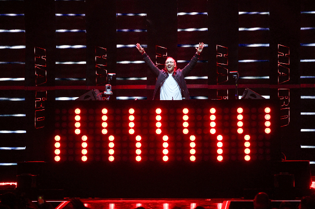 David Guetta performs during the iHeartRadio Music Festival at the MGM Grand Garden Arena in Las Vegas on Friday, Sept. 18, 2015. (Chase Stevens/Las Vegas Review-Journal) Follow @csstevensphoto