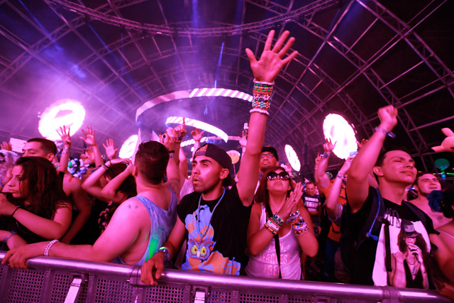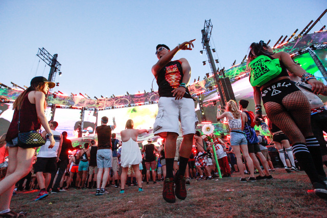 Attendees dance to music at the Circuit Grounds stage at Electric Daisy Carnival at the Las Vegas Motor Speedway in Las Vegas on Sunday, June 21, 2015. (Chase Stevens/Las Vegas Review-Journal) Follow Chase Stevens on Twitter @csstevensphoto