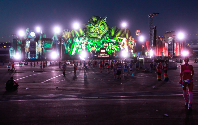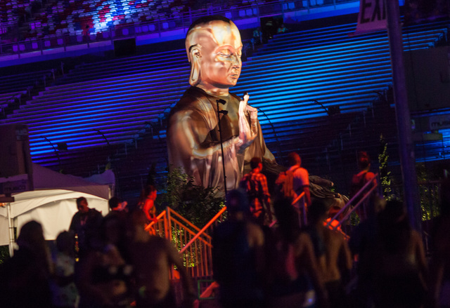 A buddha statue looms over attendees at Electric Daisy Carnival at the Las Vegas Motor Speedway in Las Vegas during the early hours of Monday, June 22, 2015. (Chase Stevens/Las Vegas Review-Journal) Follow Chase Stevens on Twitter @csstevensphoto