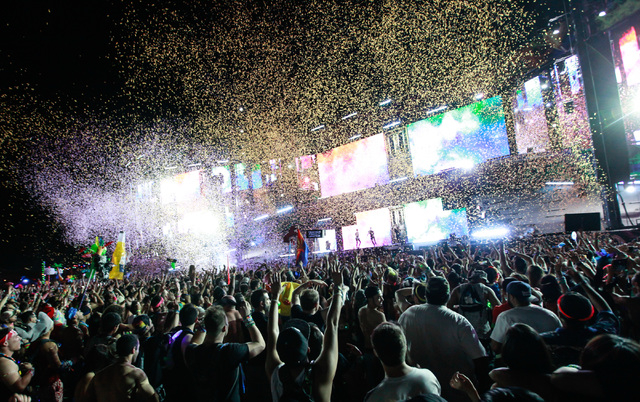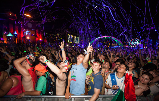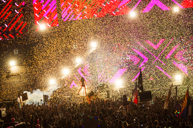 Confetti flies in the air as Seven Lions performs on the Cosmic Meadow stage at Electric Daisy Carnival at the Las Vegas Motor Speedway in Las Vegas during the early hours of Monday, June 22, 2015. (Chase Stevens/Las Vegas Review-Journal) Follow Chase Stevens on Twitter @csstevensphoto